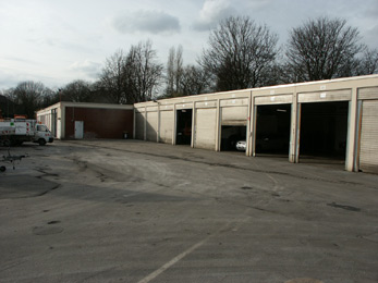 In Stahlskelettbauweise mit Sandwichpaneelverkleidung wurden 7 Einstellplätze in einer Fahrzeughalle geschaffen, die über die Eigenschaft verfügen muss, bei geringstem wirtschaftlichen Aufwand frostfrei und natürlich belüftet zu sein. Zur Entwässerung des Hallenvorplatzes und des Hallenbodens wurden in den Toren Entwässerungsrinnen vorgesehen. Der Asphalt des Bodens wurde ausgebessert und die Halle erhielt einen Betonsockel, der der Stahlkonstruktion einen Anprallschutz und Wetterschutz bietet. Zur Haltung der Halle im frostfreien Zustand wurde als wirtschaftlichste Lösung zwei Heizkörper mit Temperaturbegrenzung aufgestellt. Da es sich hier um eine Mittelgarage handelt, wurde eine natürliche Belüftung gewählt und zusammen mit einem Gutachter geplant.