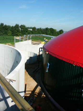 In der Biogasanlage werden ausschließlich nachwachsende Rohstoffe wie Getreide und Maissilagen zur Strom und Wärmeerzeugung verarbeitet. Zur Prozessstabilität wird zum Anfahren der Anlage Rindergülle eingesetzt, die in geschlossenen Fahrzeugen mit Saugstutzen angeliefert und im geschlossenen Prozess verarbeitet wird.
